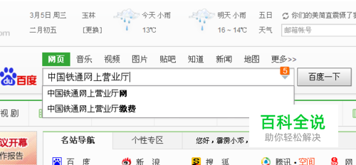 输入“中国铁通网上营业厅”进行搜素。