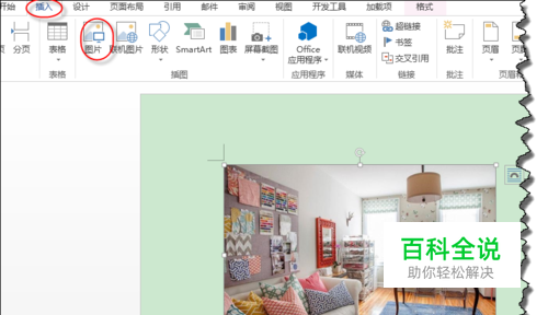 打开WORD,在“插入”选项卡中点击“图片”,插入图片。