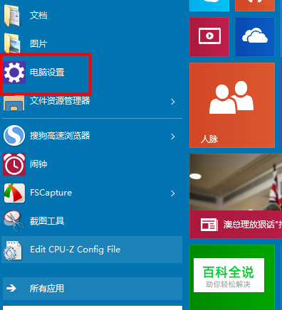 我们点击win10的“开始”菜单。我们选择“电脑设置”