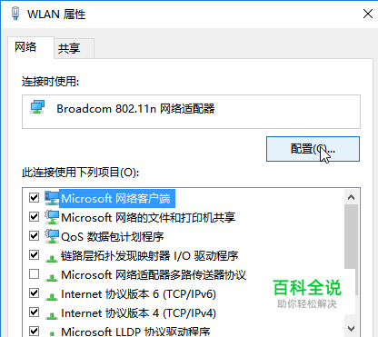 点击配置,看看电源管理中是否出现允许关闭以节约用电,如果有请将√去除