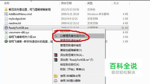 打开软件后,您看到的界面可能跟翔飞的不一样,这个没有关系的,只是翔飞的电脑已经破解了,所以有些显示会不一样,只要按照相关说明一步一步操作即可。选择用管理员身份运行ReadyFor4GB.exe,点应用,回车退出。