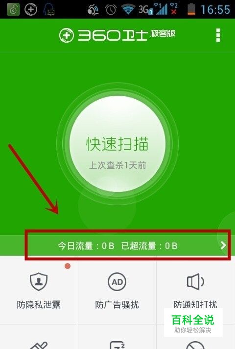 打开安全卫士,点击【今日流量 已超流量】右侧的箭头。