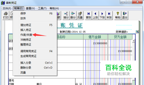 然后就会在凭证左上角显示“作废”两字,只有显示这个字样的凭证才可以删除。