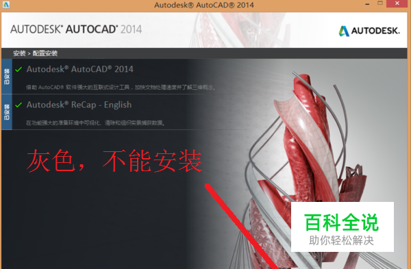 很多使用CAD的朋友因为各种原因删除CAD后再安装时,遇到安装按钮变成灰色,不能安装的问题,如下图。这是注册表没有清理干净的问题。