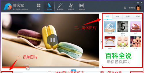 图片制作MV 需求对象:各类fans、学生、父母、小情侣等 可做成: 偶像MV、学生时代回忆MV、自家娃的MV、那个他(她)的MV、 旅游风景的MV 第一步:进入“图片MV”界面,点击“添加图片”按钮; 第二步:按住Ctrl,然后用鼠标点击多张图片,点击“打开”按钮,大功告成!