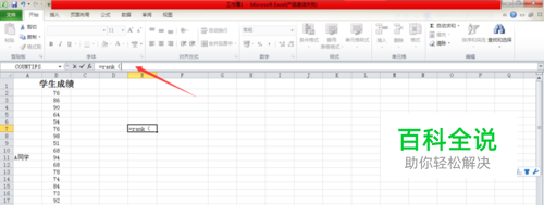 我们来完成A同学的排名情况。接下来我们要用到rank函数,在如图所示的输入框中输入“=rank(”