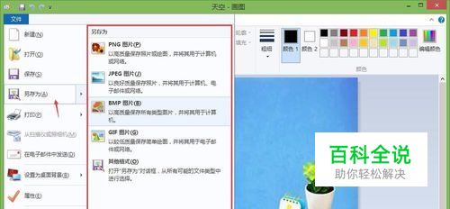 如图所示的画图面板中,选择文件>>另存为,选择一种保存的格式,保存即可。