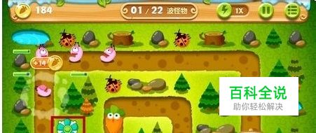 打掉松树后就可以出现一组4个太阳花的塔阵,迅速升级1~2个道顶级,小怪就不再有压力了!