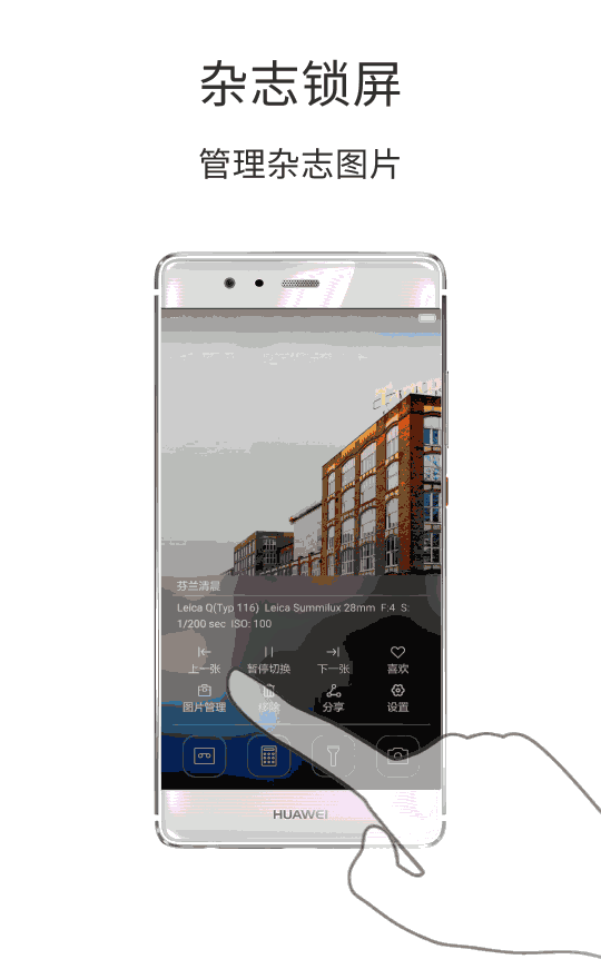 每次解锁都想欣赏到不一样的锁屏图片?来定义自己的专属图片库吧。在锁屏界面,从屏幕底部向上滑动,打开杂志锁屏快捷操作面板。