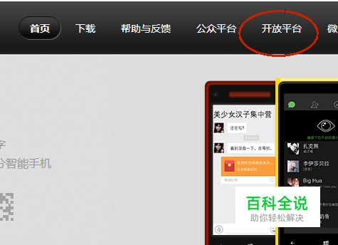 首先要先进入到微信的官方网站,进入到官方网站以后在页面的右上角的位置点击开放平台,如图所示: