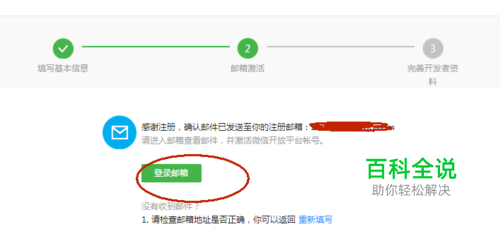 点击下一步以后会发一个激活的邮件到前面填写的邮箱里面,点击页面上的登录邮箱进入到邮箱里面,如图所示: