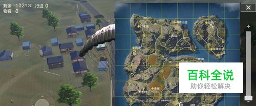 游戏一开局, 所有玩家都将乘坐飞机投入荒岛,这时候玩家应随时关注地面,选准合适的建筑群后,点击屏幕上的【离开】按钮,并操作页面左下方的摇杆,操控最终落脚位置,避免偏差。切记不要随意就点击【离开】,否则没注意很可能直接掉进湖泊或者草原。