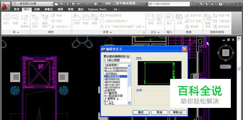 我们也可以直接输入BEDIT命令或者在命令面板单击块编辑按钮先打开对话框,再在列表中选择我们要编辑的图块。 2、从预览图和名称确认是我们要编辑的图块后,单击“确定”按钮,进入块编辑器。