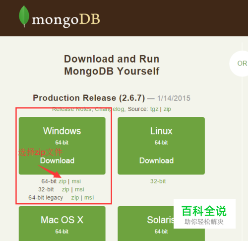 选择windows平台,如图点击需要的 zip文件下载(笔者这里主要讲诉zip文件的安装) legacy版本可以用于旧版本系统下安装,这里不推荐。