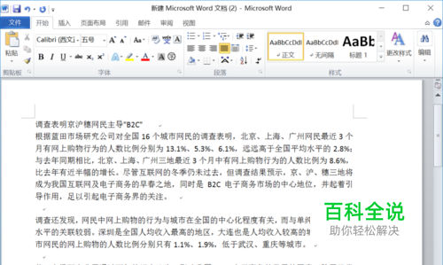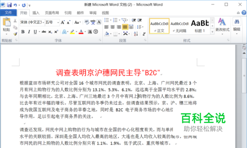 第一题:将标题段("调查表明京沪穗网民主导"B2C"")设置为小二号黑体、 红色、居中,并添加黄色底纹,设置段后间距为1行 将正文部分首行缩进2字符 将正文第三段分为等宽两栏,其栏宽17字符 第二题