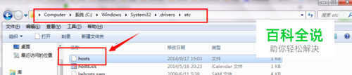 打开电脑的系统盘(一般默认为C盘):C盘 -> Windows -> System32 -> drives -> etc -> hosts文件