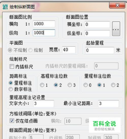 绘制断面,CASS中有多种方法来绘制断面。不管你使用哪一种方法,断面的纵比例和横比例中请填写1000。因为这样绘制出来的断面更方便你后续的计算。