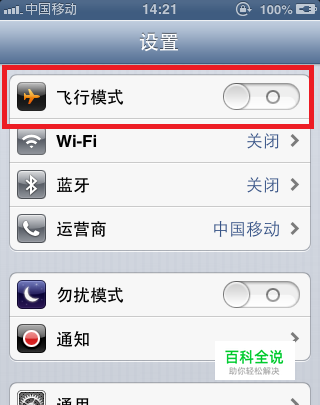 在电话接通后,挂断,此时还不需要拔除手机卡。切换到“设置”,开启“飞行模式”。