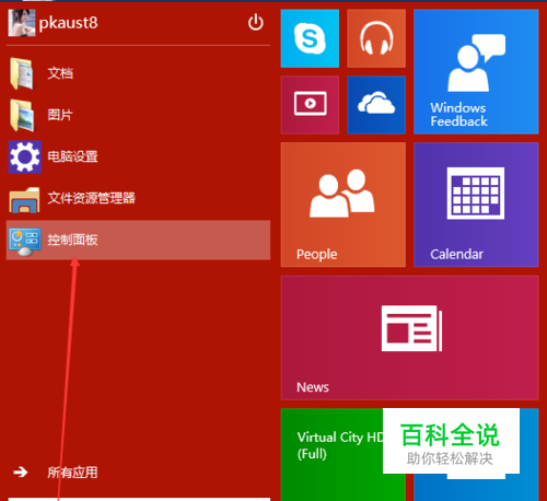 点击Win10系统开始菜单,选择弹出菜单的控制面板,如下图所示。