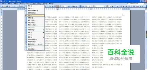 在格式菜单下选择分栏,在分栏对话框中选择一栏,点击确定,这时文字成为了一部分