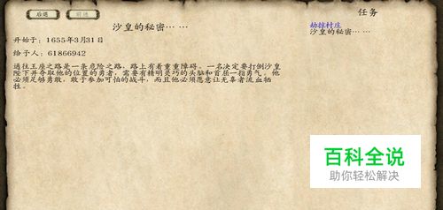 然后任务栏里就会出现“沙皇的秘密”的任务。