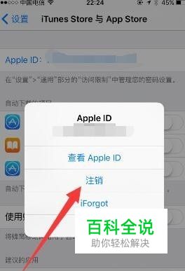 进入“itunes store与app store”后点击上面的apple id,然后在弹出的选项中选择注销;