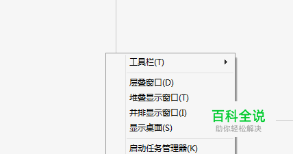 在任务栏空白处鼠标右键单击“属性”