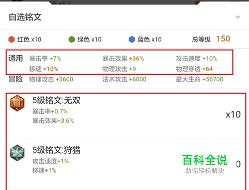 二、 百穿铭文:10鹰眼(ADC必出)提供64物穿,9物攻;10狩猎提供10攻速,10移速;9异变,1无双提供32.4物穿,0.7暴击,3.6暴击效果。 这套铭文,不多说,纯输出铭文配平砍王绝配,前期护甲不高的情况下可以占据优势。