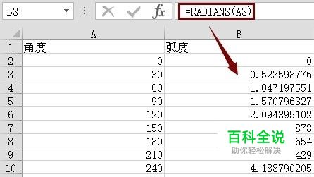 EXCEL角度和弧度转换