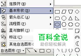 本文以PowerPoint为例子,打开演示文稿以后,在窗口的下面我们找到“自选图形”并点击,在弹出的菜单中选择“基本形状”,并在其右方选择“椭圆”图形,如下图!
