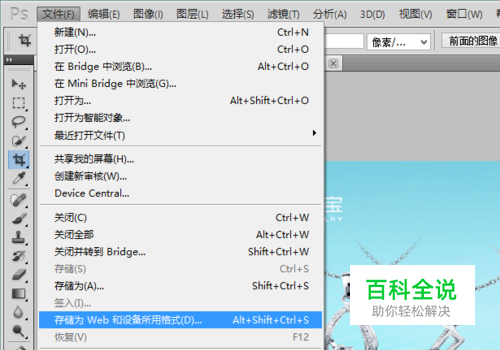 使用PS打开图片→文件→存储为Web和设备所用格式→如下图所示