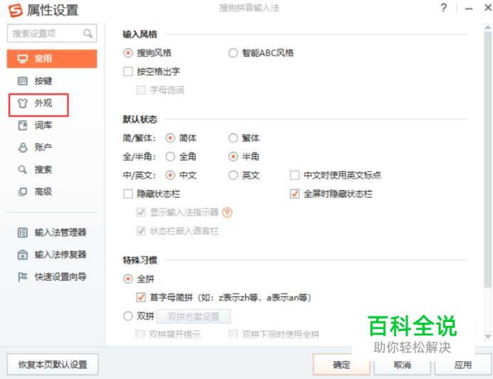 弹出的界面,我们点击外观;