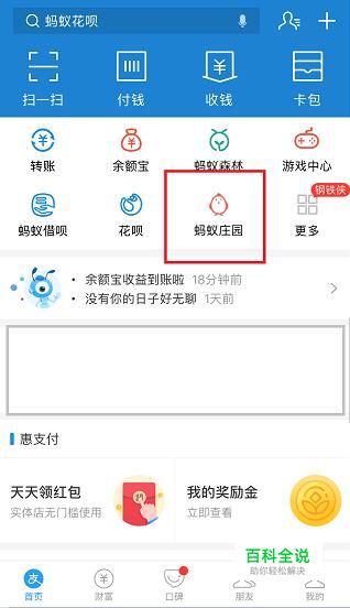 首先,打开手机支付宝APP,点击进入“蚂蚁庄园”。