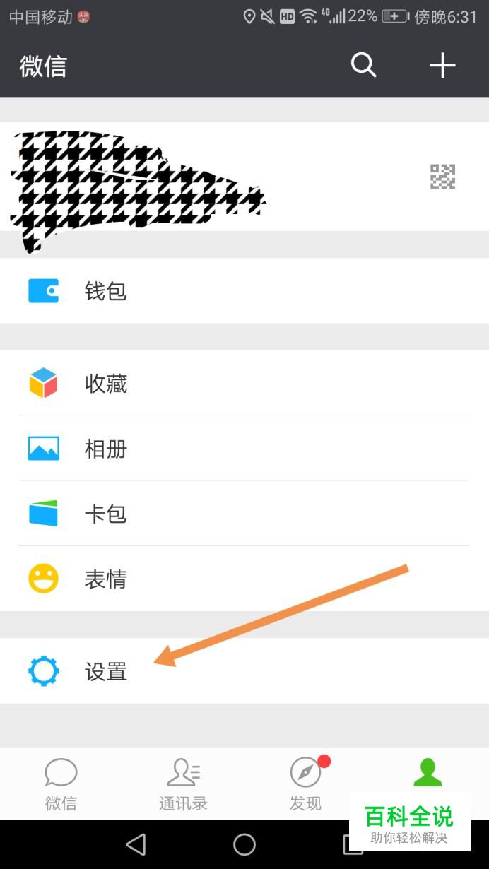 首先打开微信,点击“我”,然后点击最下方的设置,如下图。