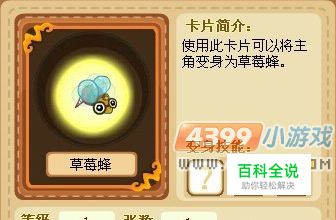 草莓蜂,变身后属性:HP上限+300, MP上限+200;获取方法:摩尔勇士草莓蜂变身卡怎么得?