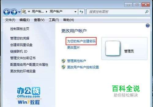 然后再“更改用户账户”中选择“为您的账户创建密码”。