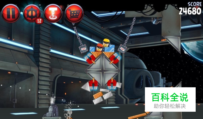第一章:NABOO INVASION小猪P1-S2攻略 依旧是分两步走,先从下面的那四只开始解决。只要利用好反弹就能轻松消灭下面的四只,记得要多打烂木板拿分数哦! 然后上方的两只更是简单,只需要碰到其中一个TNT桶,就会爆炸消灭上方的敌人了,轻松三星!
