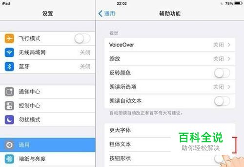 第二步,在“辅助功能”页面,找到“粗体文字”,点击打开右侧的开关按钮。