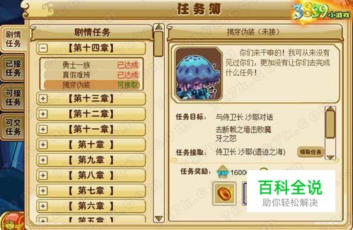 打开任务簿,找侍卫长沙耶接取任务【揭穿伪装】