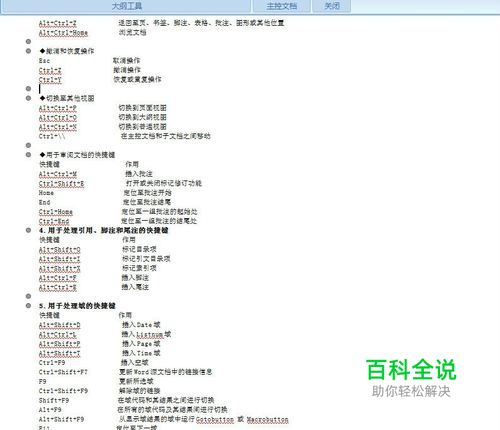 切换至其他视图Alt+Ctrl+P 切换到页面视图 Alt+Ctrl+O 切换到大纲视图Alt+Ctrl+N 切换到普通视图Ctrl+\\ 在主控文档和子文档之间移动