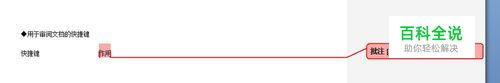 ◆用于审阅文档的快捷键快捷键 作用Alt+Ctrl+M 插入批注Ctrl+Shift+E 打开或关闭标记修订功能Home 定位至批注开始End 定位至批注结尾Ctrl+Home 定位至一组批注的起始处Ctrl+End 定位至一组批注的结尾处