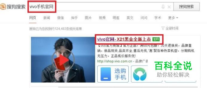 使用搜狗引擎搜索Vivo官网,并进入,如图所示