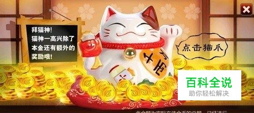 玩家进入到游戏中后,只要充值100金币或更高金额的金币后,在充值按钮旁就会出现一只肥肥大大的小猫爪。点击进入拜猫神界面之后,会看到有个抽奖金额的画面,里面出现的数字是当前玩家人民币充值的金币总数,这些真实充值的金币就可以用来拜我们的猫神啦! 玩家们需要注意的是供奉给猫神的金额分为四种100,500,1000和MAX(最高金额),在拜猫神的时候只需先选择好自己要供奉的金额后再点击一下那只猫爪子,就可以了,需要注意一点,默认是全部金额都供奉。所以一定要看清楚了在进行供奉! 拜猫神分为三种状态: 1、笑纳状态:发了一下呆,猫神只能返还你10%的金币哦,总返还为110%,偷着笑去吧。 2、开心状态:如果足够虔诚,猫神会额外多给50%的金币哦,总返还值150%,太开心了。 3、笑抽状态:因为特别的缘故,猫神笑抽了,一不小心就额外多给了1倍的金币。我们也要笑抽了!!! 听了这么多拜猫神系统的介绍,你会不会已经忍不住的想去供奉一下我们的拜猫神了呢,我们的猫神已经迫不及待的再等你了哦!
