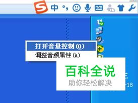 点击桌面右下角的灰色小喇叭图标,在弹出的菜单里选择“调整音量控制”。