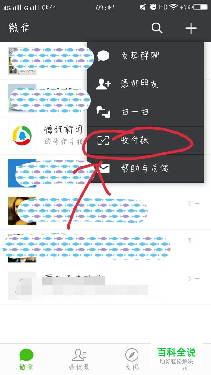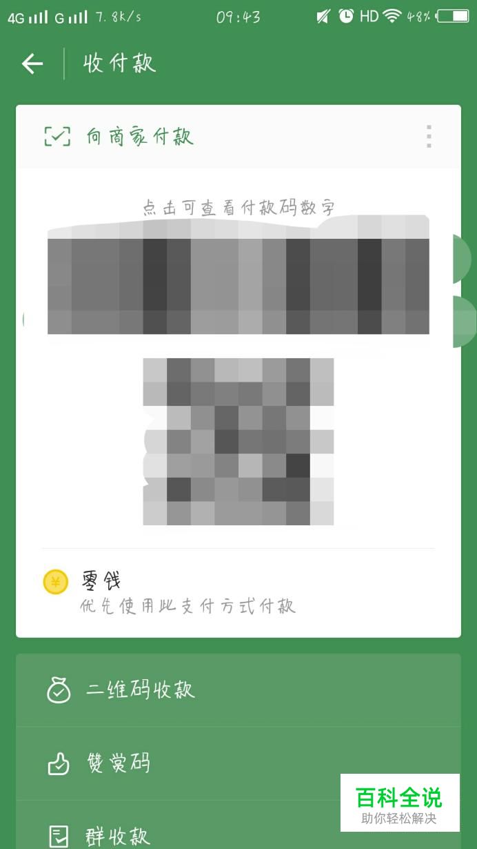 你也可以点击主界面右上角“+”,点击收付款款,点击付款码,让商家扫你的付款码就可以了
