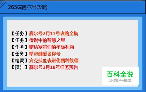 传说中的智慧之星:要抓的精灵是【宾克】→【宾塞克】 赛尔号宾克出现的地点是塞西莉亚星。
