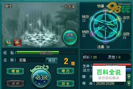 宠物的成长 人物获得击杀怪物、交还任务得到经验的同时,出战的宠物也会获得经验。经验达到宠物升级经验,即可自动升级。当然,宠物宝宝帮你打怪,咱们也不能亏待了这个小东西,得让它好吃好喝不是?每个城镇的宠物商处都会给宠物提供补充生命和法力的口粮和肉,带着宠物出去走江湖之前记得好好准备哦。 当人物到了一个比较高的等级再回头带着刚刚出生的宠物升级,挂机打怪无疑是很慢的,这种时候就要多多利用每日运镖、循环任务、副本等来升级宠物了。