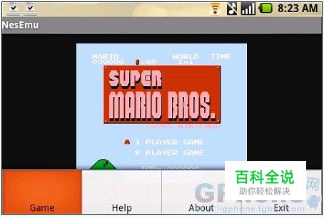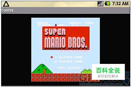 通过Abus安装软件后,我们运行,进入看到的画面是NES上的看家大作-《超级马里奥兄弟》,这个是个演示DEMO,我们不可操作,按下MENU,调出菜单,我们可以进行ROM的选择。