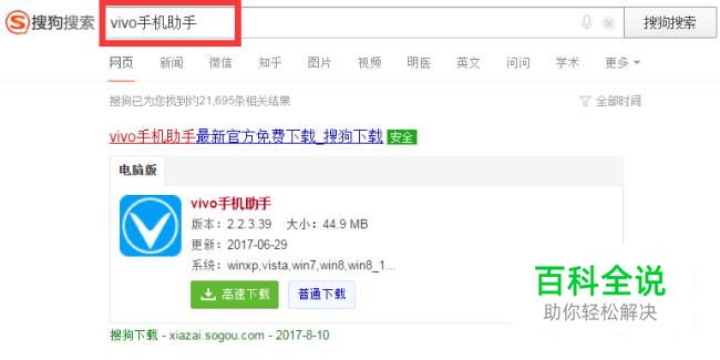首先需要在电脑上安装一个vivo手机助手,在浏览器搜索下载vivo手机助手即可。