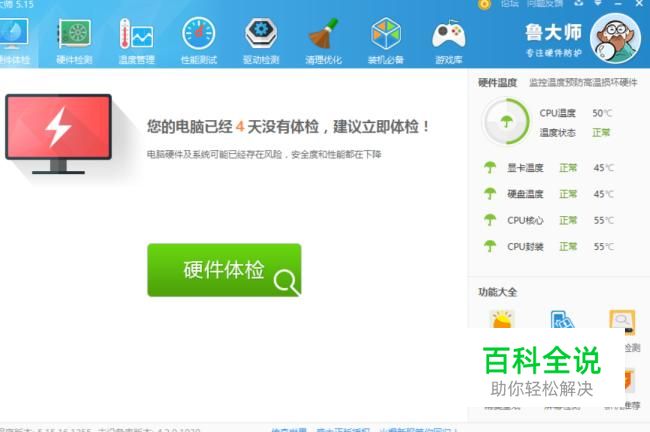 电脑CPU温度过高,可以打开鲁大师测一下电脑温度。
